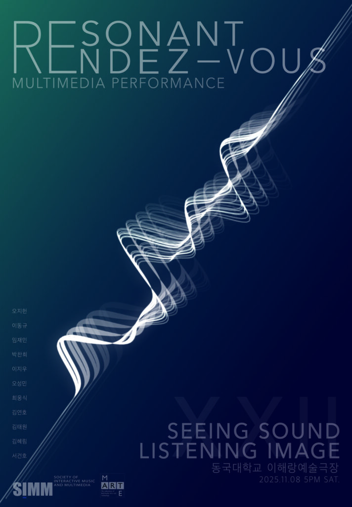 Perfomance 멀티미디어 음악공연 ‘보는소리, 듣는영상’ 2024 보는소리, 듣는영상 공연 SEEING SOUND LISTENING IMAGE Perfomance 한국멀티미디어음악학회 회원들의 작품들로 구성된 음악회로 소리를 볼 수 있고 영상을 들을 수 있는 공감각적 요소를 활용한 작품들로 구성된 창작공연이다.기존의 음악공연과 달리 현 시대대의 예술에 요구되는 멀티미디어 요소를 충족시키기 위하여 다양한 복합적 예술장르를 결합한 창작공연으로 시청각의 교감을 통하여 예술적 영감의 표현을 극대화하고, […]